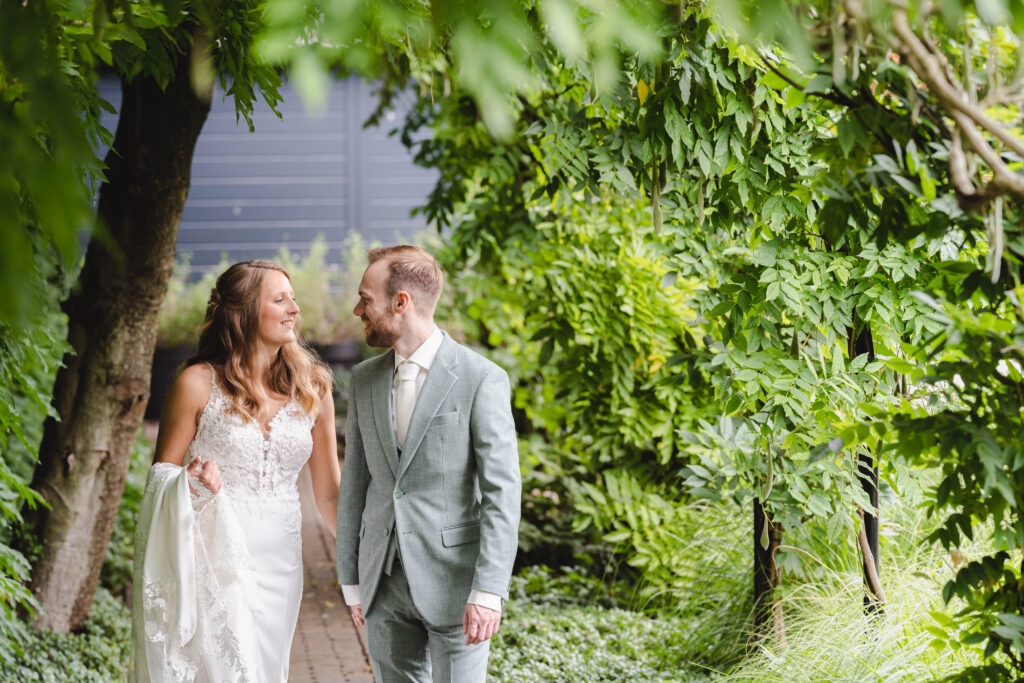 Wat een geweldige locatie is de Hooge Vuursche in Utrecht. Het is een plek die heel privé voelt en waar je ook kijkt, het is er overal prachtig. In de zomer bloeide er van alles en de fontein is een hele toffe toevoeging. Vanwege de prachtige zaal binnen vond de ceremonie binnen plaats.